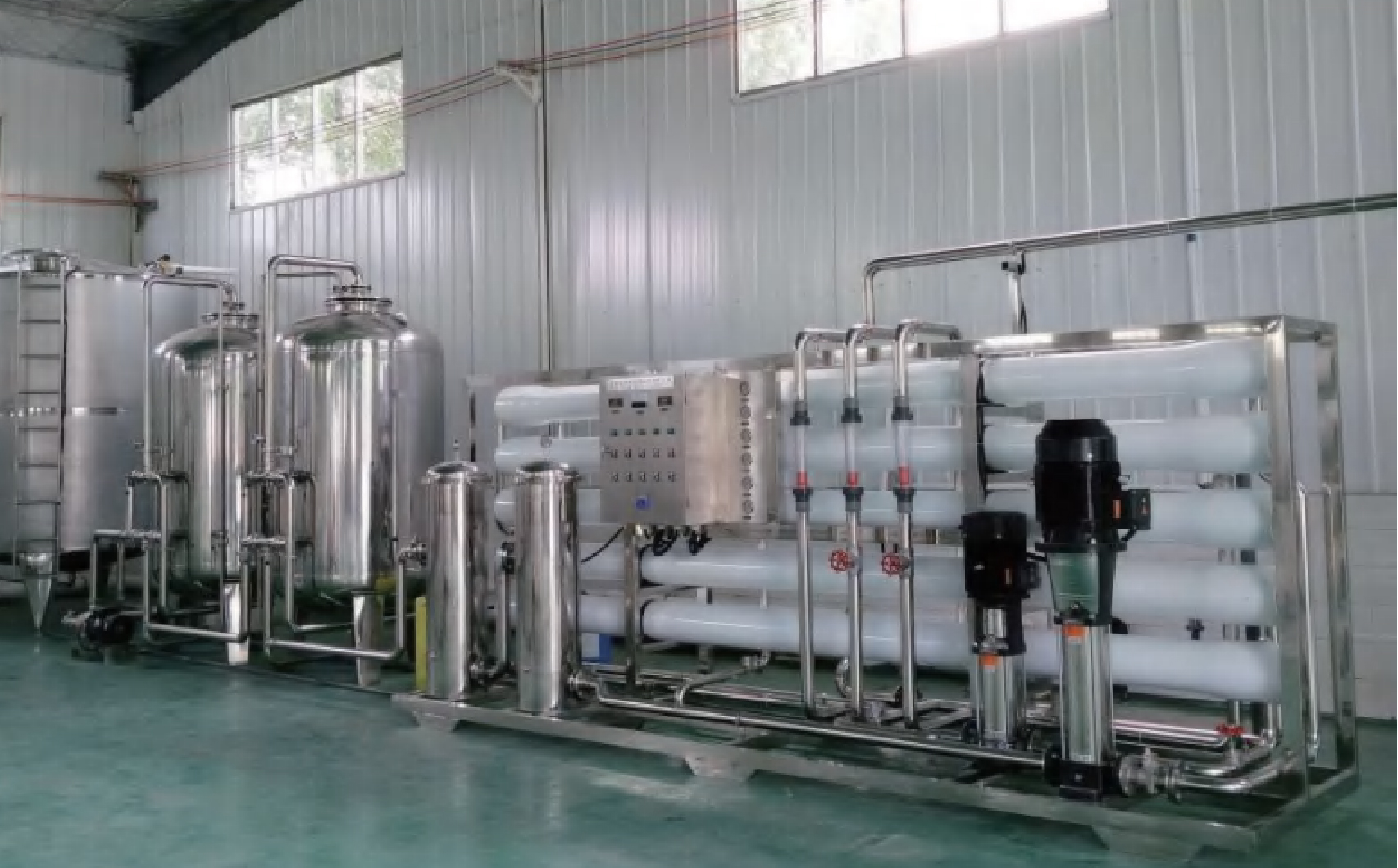 采用反滲透膜的選擇截留作用,在高于滲透壓的壓力下(0.8-1.6MPa)分離水中溶質(zhì)與溶劑,能有效去除溶解鹽、有機(jī)物、重金屬離子等雜質(zhì),脫鹽率達(dá)99%以上。設(shè)備能耗低,無(wú)二次污染,操作維護(hù)簡(jiǎn)便,出水水質(zhì)符合飲用水標(biāo)準(zhǔn)或工業(yè)純水要求,適用于海水淡化、苦咸水凈化、工業(yè)純水制備、中水回用深度處理等場(chǎng)景。